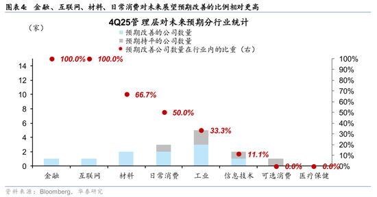 1)总量维度看,45%的企业认为4Q25业绩有所改善,33%企业预期未来进一步改善。拖累本季度增长的共性因素依然是房地产及因此带来的需求偏弱。